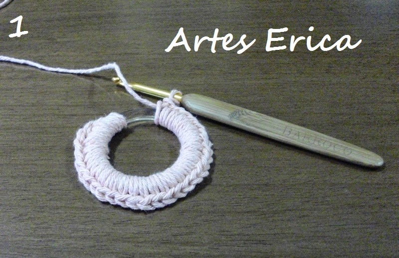 Comecei forrando uma argola acrílica,